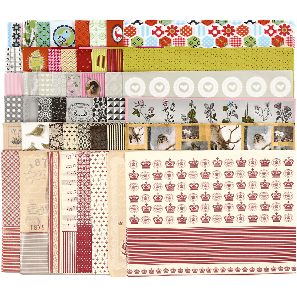 Sortiment af halvtransparent, decoupagepapir med print (Læs mere)